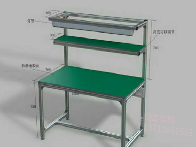 产品材料:桌面采用40*40*1.2厚方通制作和40*40铝合金制作木线包边、台面贴2.0防静电胶皮。