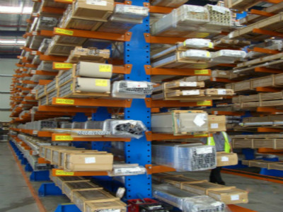 悬臂式货架是货架中重要的一种,根据结构形式可分为单面悬臂式货架和双面悬臂式货架。悬臂式货架适用于存放长物料、环型物料、板材、管材及不规则货物。悬臂式货架具有结构稳定,载重能力好、空间利用率高等特点。悬臂式货架立柱多采用H型钢或冷轧型钢,悬臂采用方管、冷轧型钢或H型钢,悬臂与立柱间采用插接式或螺栓连接式,底座与立柱间采用螺栓连接式,底座采用冷轧型钢或H型钢。货物存取由叉车、行车或人工进行。